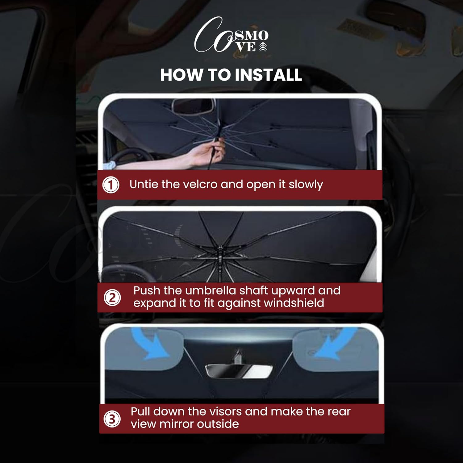 - [Car Sun Shade with Windshield Protection] Our windshield sun shade fits seamlessly as a car front glass sun shade, providing superior protection from the sun. This car sun shade minimizes heat and prevents interior fading.